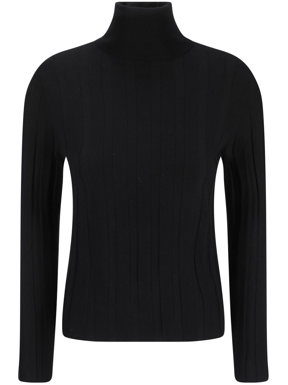 ribbed-knit jumper Highlights - Black - Wool - Ribbed knit - High neck - Long sleeves - Straight hem Imported Composition Wool 100% SIZE & FIT FittingInformation Designed for a slim fit that sits just away from the body offering a close yet comfortable fit Made with a lightweight knit, this piece offers some stretch