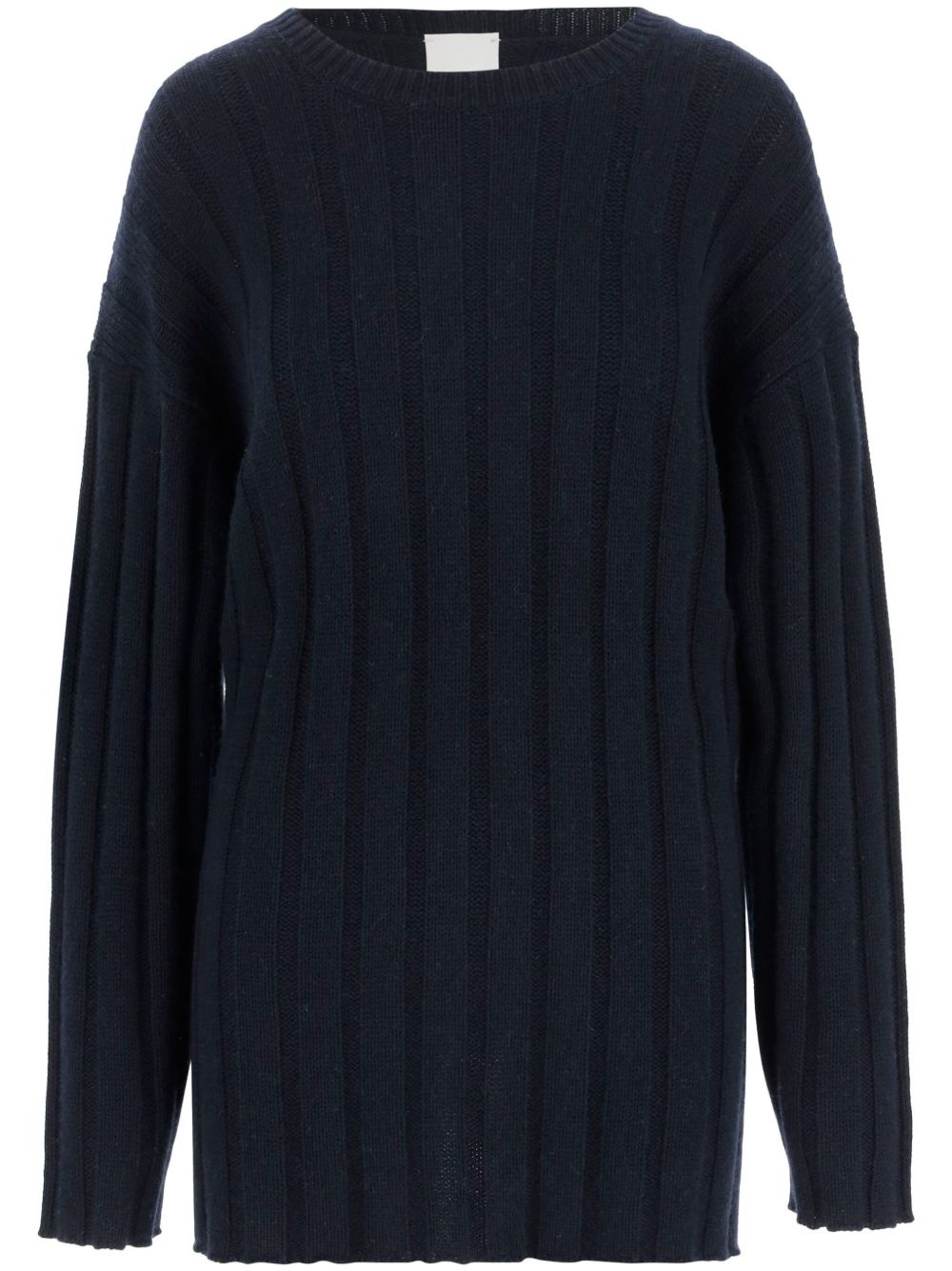 ribbed sweater Highlights - Navy blue - Round neck - Drop shoulder - Long sleeves - Straight hem Imported Composition Cotton 70%, Cashmere 30%