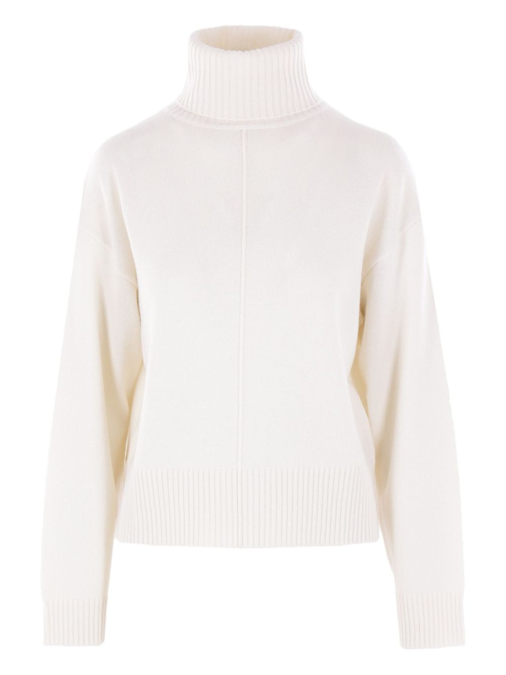 ribbed turtleneck sweater Highlights - Ivory - Roll neck - Long sleeves - Ribbed trims - Wool cashmere - Centre seam Imported Composition Virgin Wool 70%, Cashmere 30% Washing instructions Read Manufacturer Guidelines