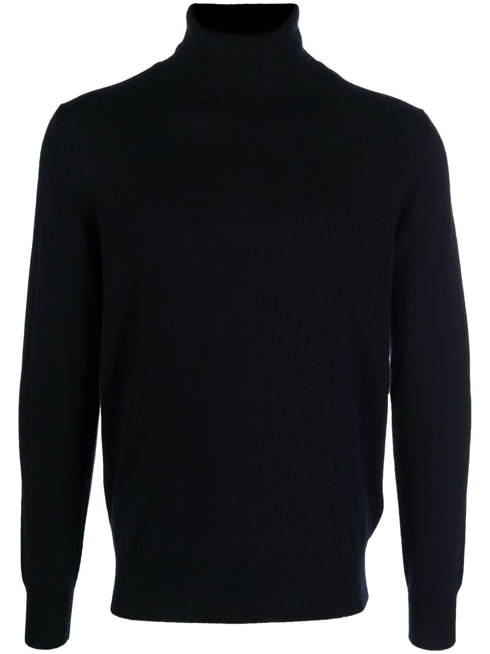 roll neck cashmere jumper navy blue cashmere fine knit ribbed trim roll neck long sleeves straight hem Imported Composition Cashmere 100%