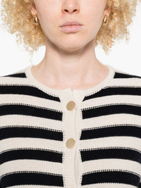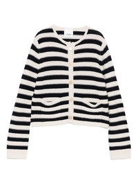 striped button cardigan Highlights - Off-white - Black stripes - Button front - Patch pockets - Long sleeves - Ribbed cuffs Imported Composition Wool 70%, Cashmere 30% SIZE & FIT Model measurements Height 5 ft 9 in(1.75 m) Bust/Chest 34.64 in(88 cm) Hips 36.61 in(93 cm) Waist 26.37 in(67 cm) Washing instructions Read Manufacturer Guidelines