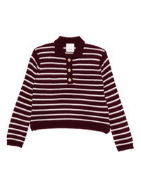 striped button-placket polo top Highlights - Burgundy - Horizontal stripes - Button fastening - Long sleeves - Ribbed cuffs - Polo neck Imported Composition Virgin Wool 70%, Cashmere 30% SIZE & FIT Model measurements Height 5 ft 10 in(1.77 m) Bust/Chest 32.28 in(82 cm) Hips 35.03 in(89 cm) Waist 25.19 in(64 cm) Washing instructions Hand Wash