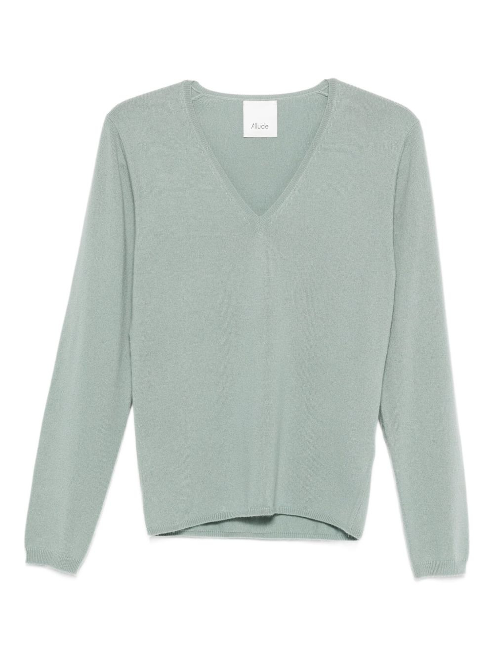 V-neck long-sleeve sweater Highlights - Green - V-neck - Long sleeves - Cashmere - Ribbed cuffs Imported Composition Cashmere 100% Washing instructions Read Manufacturer Guidelines