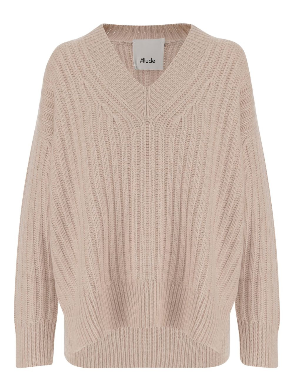 V-neck ribbed cashmere sweater Highlights - Ivory - V-neck - Long sleeves - All-over rib knitting - Straight hem Imported Composition Cashmere 100% Washing instructions Read Manufacturer Guidelines