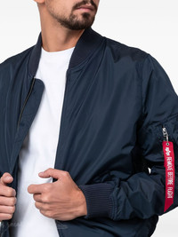 slim-cut bomber jacket Highlights - Blue - Nylon - Navy blue - Front zip fastening - Two press-stud fastening side pockets - Sleeve zip pocket - Branded zip puller Imported Composition Outer: Nylon 100% Lining: Nylon 100% Washing instructions Dry Clean Only