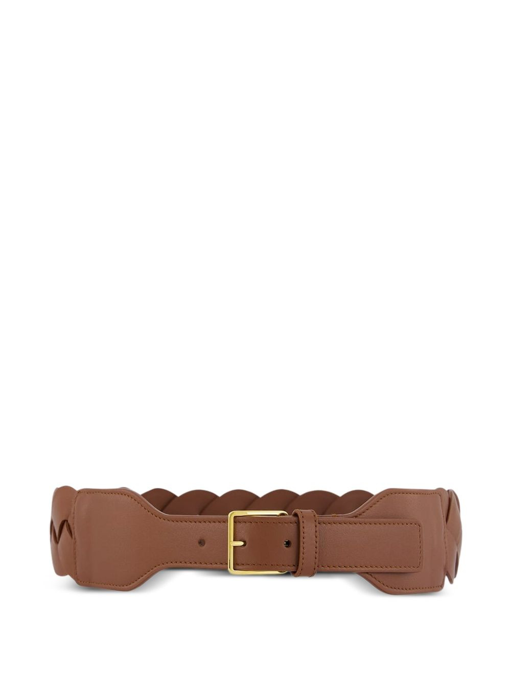braided leather square-buckle belt Highlights - Brown - Braided construction - Square buckle - Gold-tone hardware Imported Composition Calf Leather 100%