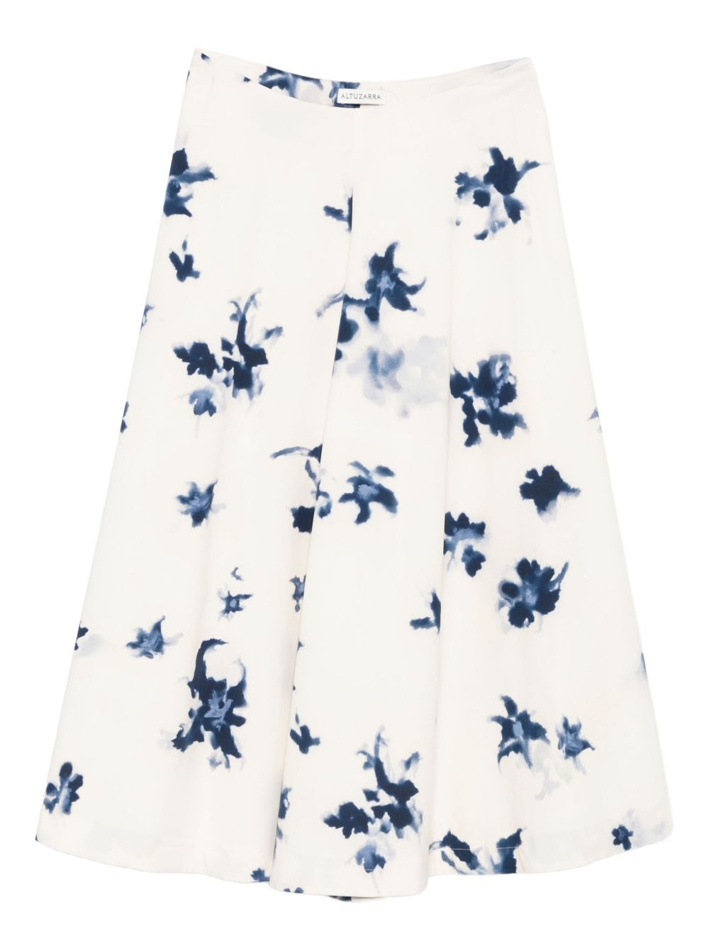 floral-print midi skirt Highlights - Off-white - Navy blue floral print - A-line shape - Pleated detailing - Midi length Made in Italy Composition Cotton 97%, Spandex/Elastane 3% SIZE & FIT Model measurements Height 5 ft 11 in(1.8 m) Bust/Chest 31.49 in(80 cm) Hips 36.61 in(93 cm) Waist 24.4 in(62 cm) Washing instructions Read Manufacturer Guidelines