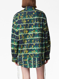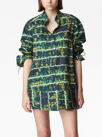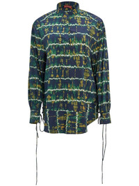 long-sleeve lace-up shirt dark green/multicolour cotton folded design high neck front lace-up fastening long sleeves folded edge straight hem Imported Composition Cotton 100% Washing instructions Dry Clean Only