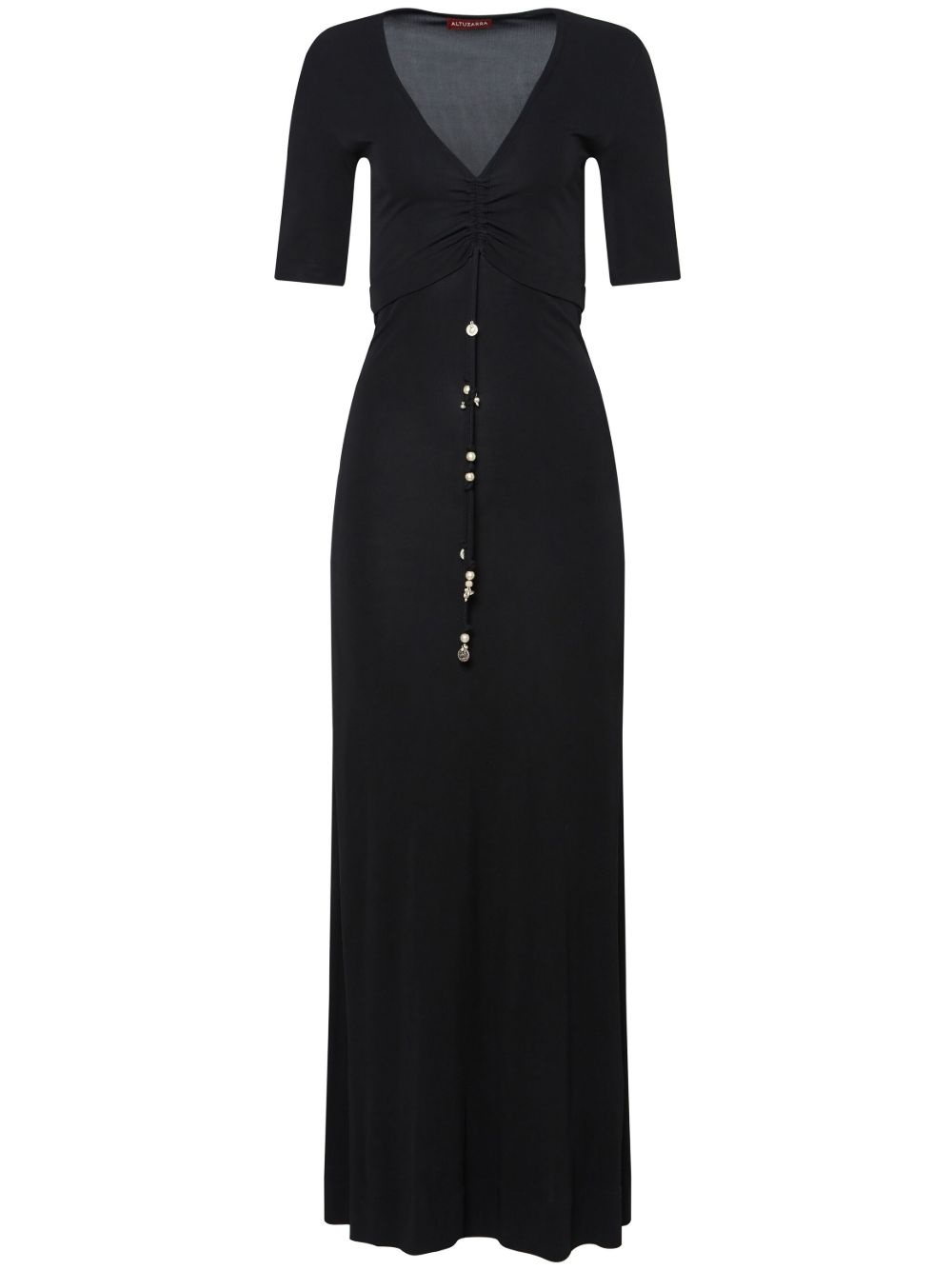 Panya short-sleeve dress Highlights - Black - V-neck - Ruched detailing - Short sleeves - Ankle-length Imported Composition Viscose 100% SIZE & FIT Measurement HIPS 37.79 in(96 cm) LENGTH 53.14 in(135 cm) WAIST 33.07 in(84 cm)