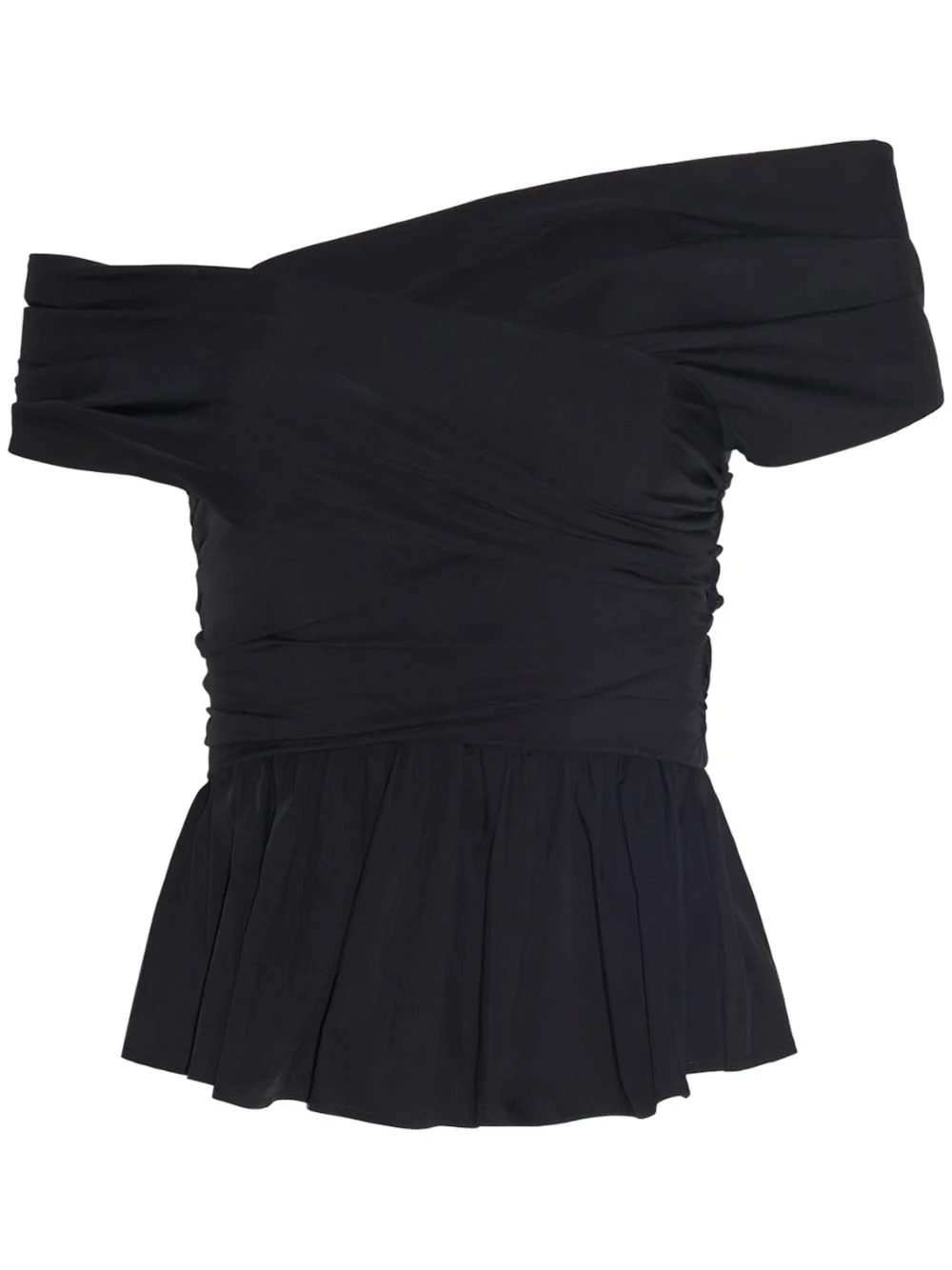 Pella off-shoulder draped top Highlights - Jet black - Cotton blend - Poplin texture - Crossover strap detail - Draped panel detail - Asymmetric neck - Off-shoulder - Concealed side zip fastening - Peplum hem Made in Italy Composition Cotton 70%, Polyester 30% Washing instructions Dry Clean Only