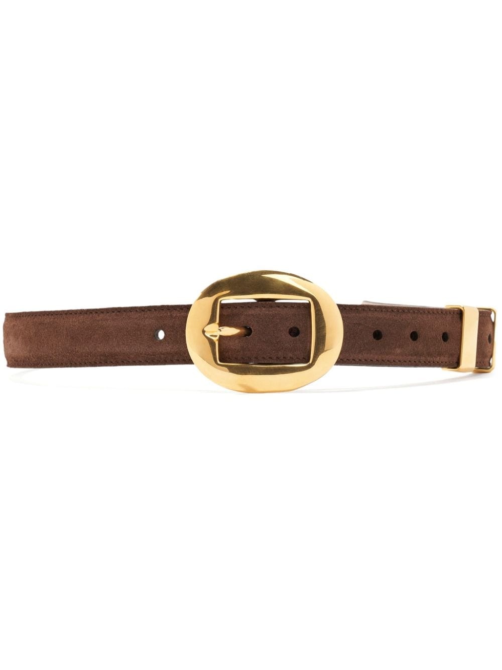 Vintage leather belt Highlights - Chocolate brown - Calf leather - Brass - Gold-tone buckle fastening - Punched holes Made in Italy Composition Calf Leather 100%