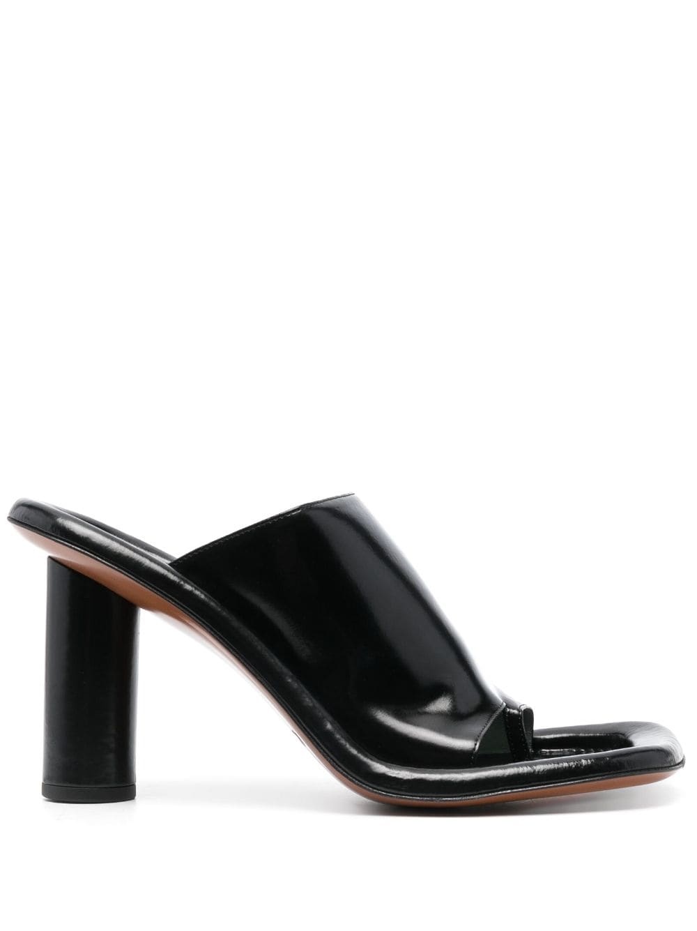 95mm leather sandals AMBUSH presents these cushioned mules for a soft take on classic footwear. The slip-on profile is finished with a padded trim for a final touch. Highlights - Black - Calf leather - Patent finish - High block heel - Branded footbed - Square toe - Slip-on style Made in Italy Composition Lining: Calf Leather 100% Sole: Calf Leather 100% Outer: Calf Leather 100% SIZE & FIT Measurement HEEL 4.33 in(11 cm)