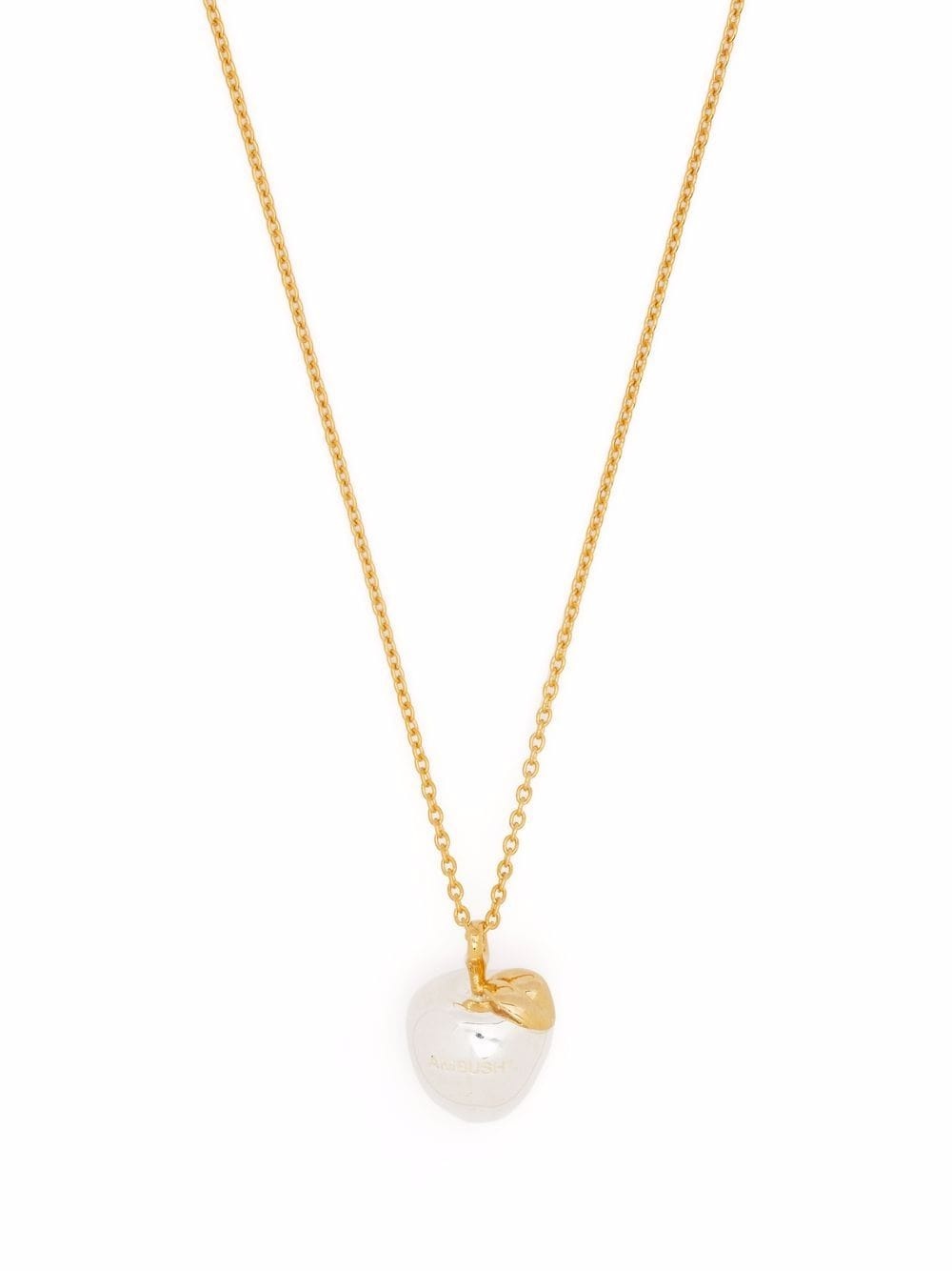 apple-charm necklace silver-tone sterling silver apple charm engraved logo lobster claw fastening Imported SIZE & FIT Model measurements Height 6 ft 3 in(1.9 m) Bust/Chest 38.18 in(97 cm) Hips 37.79 in(96 cm) Waist 32.67 in(83 cm)