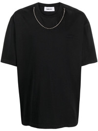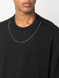 Ballchain cotton T-shirt AMBUSH elevates this loose-cut T-shirt with a ball chain below the neckline in a silver tone. Highlights - Black - Cotton - Crew neck - Ball chain - Drop shoulder - Short sleeves - Straight hem - When buying this unisex item, keep in mind that it is graded in standard men's sizing. Imported Composition Cotton 100%, Polyester 100% SIZE & FIT Model measurements Height 5 ft 10 in(1.77 m) Bust/Chest 31.88 in(81 cm) Hips 36.22 in(92 cm) Waist 24.01 in(61 cm) FittingInformation This piece is unisex – if you usually select men's sizing expect a loose fit throughout; if you usually select women's sizes, expect an oversized fit Made from a midweight non-stretch fabric, this piece offers minimal elasticity when worn Washing instructions Machine Wash