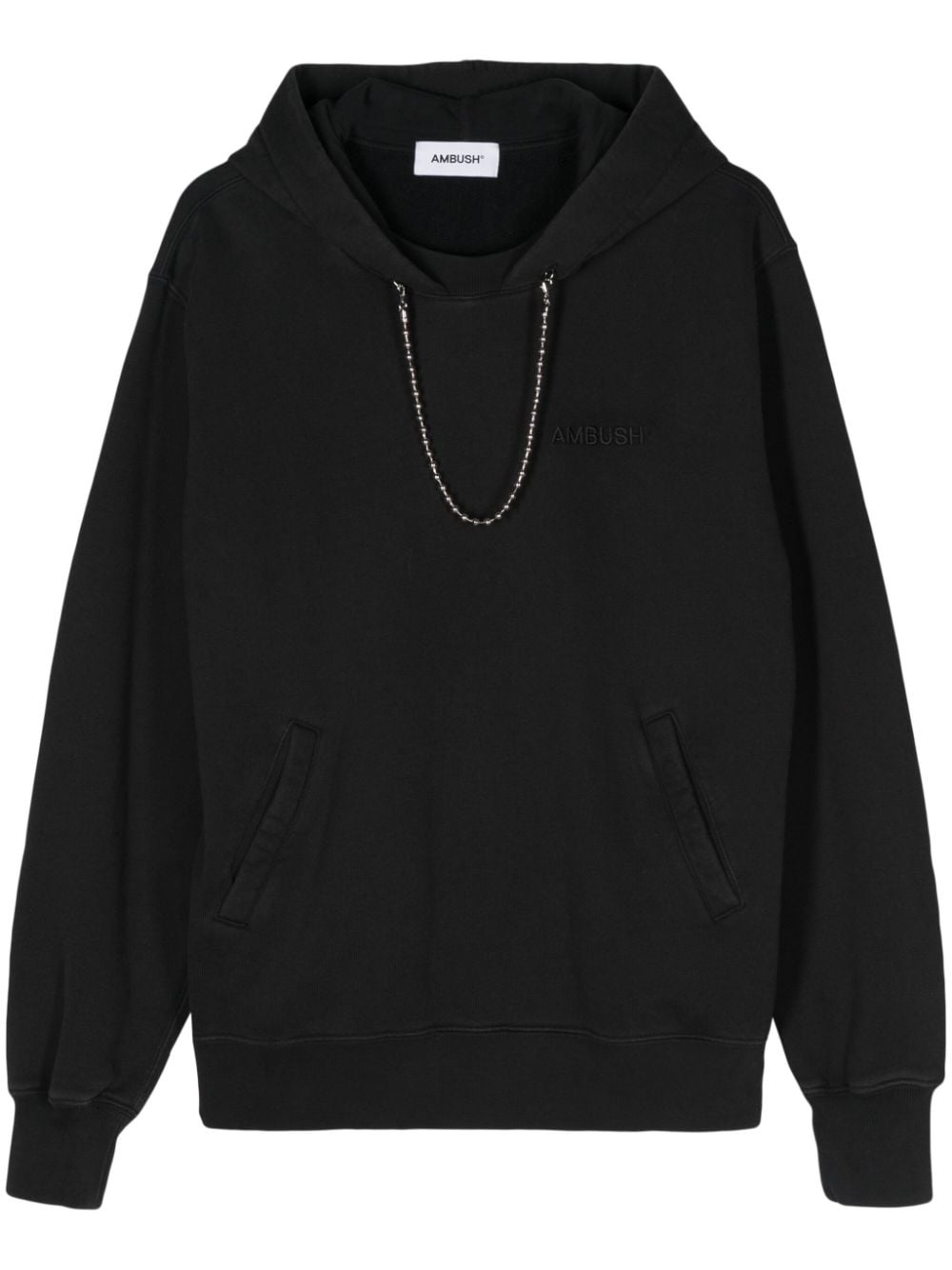 ballchain-detail cotton hoodie Highlights - Black - Cotton - Jersey texture - Classic hood - Drop shoulder - Long sleeves with ribbed cuffs - Detachable ball chain - Embroidered logo at the chest - Front pouch pocket - French terry lining - Ribbed hem - When buying this unisex item, keep in mind that it is graded in standard men's sizing. Imported Composition Cotton 100%, Polyester 100%