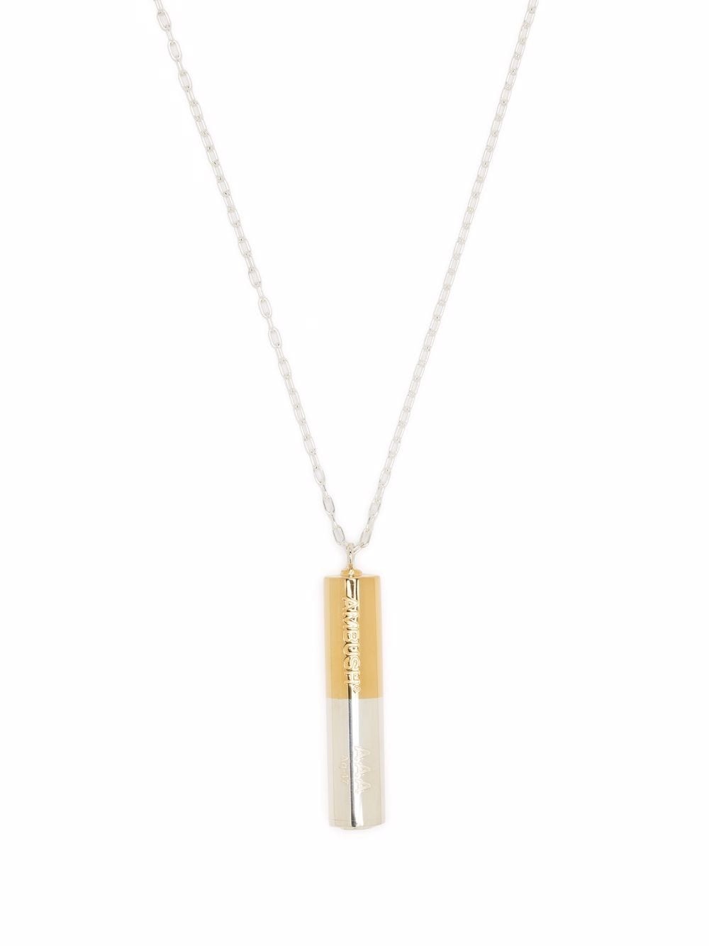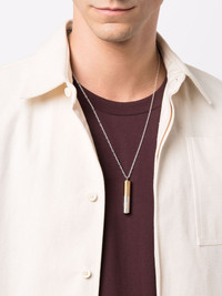 battery-charm necklace AMBUSH's pieces are designed to surprise - and this is reflected in the brand's name. This contemporary battery-pendant necklace reflects their unexpected aesthetic. Imported SIZE & FIT Model measurements Height 6 ft 1 in(1.86 m) Bust/Chest 35.43 in(90 cm) Hips 35.43 in(90 cm) Waist 29.92 in(76 cm)