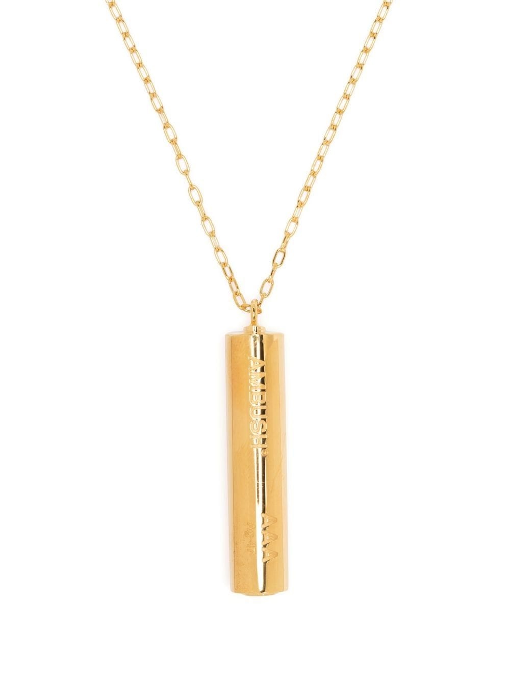 battery-charm necklace AMBUSH presents this miniature statement piece from the SS22 collection. This gold-tone necklace is finished with a battery pendant for an eye-catching addition. Imported SIZE & FIT Model measurements Height 6 ft 2 in(1.89 m) Bust/Chest 37.79 in(96 cm) Hips 37 in(94 cm) Waist 29.92 in(76 cm)