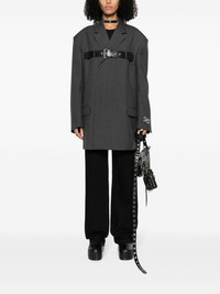 belted-detail virgin-wool blazer Highlights - Medium grey - Virgin wool - Melange effect - Calf leather belted detail - Logo patch at the sleeve - Notched lapels - Front buckle fastening - Long sleeves - Belt loops - Two front flap pockets - Two rear welt pockets - Straight hem - When buying this unisex item, keep in mind that it is graded in standard men's sizing. Made in Italy Composition Outer: Virgin Wool 100%, Calf Leather 100% Lining: Viscose 100% SIZE & FIT Model measurements Height 5 ft 10 in(1.78 m) Bust/Chest 33.07 in(84 cm) Hips 36.61 in(93 cm) Waist 24.8 in(63 cm) FittingInformation This piece is unisex – if you usually select men's sizing expect a loose fit throughout; if you usually select women's sizes, expect an oversized fit The internal shoulder pads offer a structured shape Made from a midweight non-stretch fabric