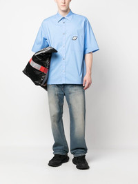 buttoned bowling shirt Highlights - Light blue - Cotton - Logo patch at the chest - Classic collar - Front button fastening - Short sleeves - Straight hem - Chest patch pocket - When buying this unisex item, keep in mind that it is graded in standard men's sizing. Made in Italy Composition Cotton 100% SIZE & FIT Model measurements Height 5 ft 10 in(1.78 m) Bust/Chest 33.46 in(85 cm) Hips 36.22 in(92 cm) Waist 23.22 in(59 cm) Measurement CHEST 54.33 in(138 cm) SLEEVE LENGTH 10.62 in(27 cm) LENGTH 29.92 in(76 cm) WAIST 51.96 in(132 cm) Shoulder Width 23.22 in(59 cm) FittingInformation This piece is unisex. Please take care when selecting your size Cut for an oversized fit for both men and women Made with a mid-weight non-stretch fabric Washing instructions Machine Wash