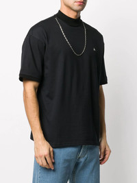 chain necklace T-shirt Even if you counted all of your black T-shirts and realised you have too many, we can guarantee that you won't have one like this black cotton chain necklace T-shirt from AMBUSH! It's a unique design that says, "hey, I'll put the look together for you". It features a relaxed fit, a contrast embroidered logo at the chest, a round neck, short sleeves and a straight hem. Imported Composition Cotton 100%, Metal 100% SIZE & FIT Model measurements Height 5 ft 10 in(1.78 m) Bust/Chest 33.07 in(84 cm) Hips 35.82 in(91 cm) Waist 26.96 in(68.5 cm) FittingInformation This piece is unisex. Please take care when selecting your size Designed for a loose fit for men and an oversized fit for women Made with a mid-weight fabric