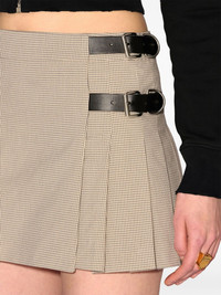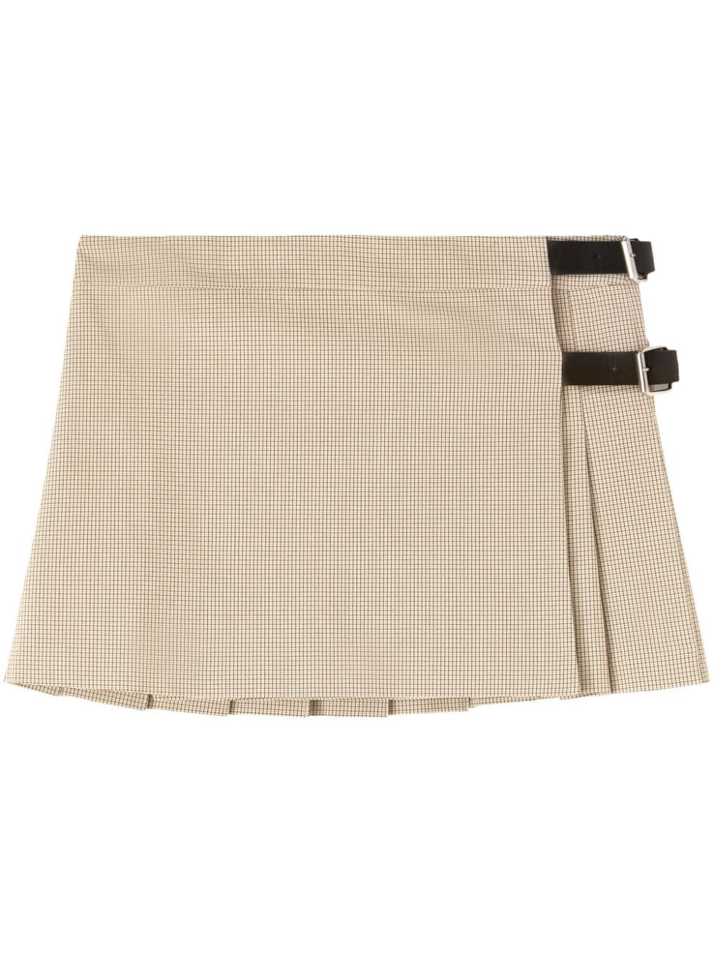 checkered belted miniskirt Highlights - Beige/brown - Cotton blend - Check pattern - Side buckle fastening - Pleated back - Thigh-length Made in Italy Composition Outer: Cotton 50%, Polyamide 48%, Spandex/Elastane 2% Lining: Viscose 100%