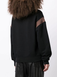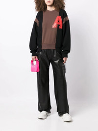 collegiate-print patchwork sweatshirt black/brown/poppy red cotton patchwork design logo print at the chest drop shoulder crew neck long sleeves asymmetric hem Made in Italy Composition Body: Cotton 100%
