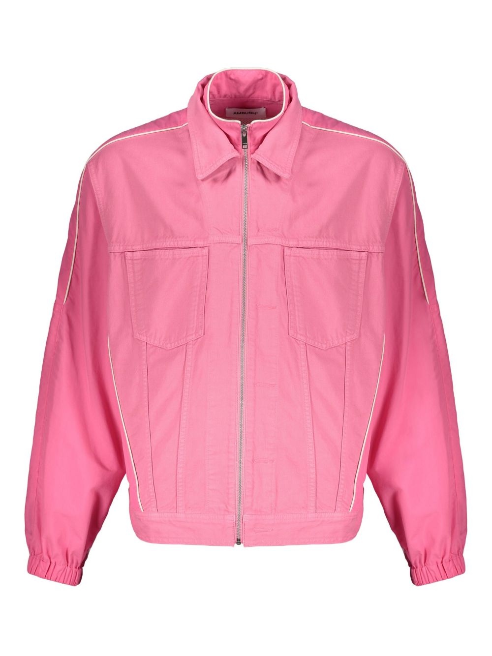 contrast-piping utility jacket Highlights - Bubblegum pink - Front zip fastening - Two chest pockets - Elasticated cuffs - Contrast piping details - Rear panel cutout Imported Composition Rayon 100%, Nylon 100%, Cotton 100%, Polyester 100%