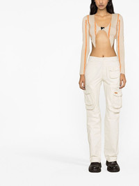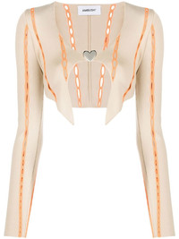 contrast-trim cropped cardigan AMBUSH's SS23 collection is inspired by Tokyo's club culture and rave scene, echoed in the energised silhouette of this cropped cardigan. Crafted with orange openwork knit detailing, it's secured with a silver-tone heart buckle that emphasises the joyous mood. Made in Italy Composition Viscose 71%, Polyester 24%, Polyamide 5% SIZE & FIT Model measurements Height 5 ft 10 in(1.78 m) Bust/Chest 31.49 in(80 cm) Hips 35.03 in(89 cm) Waist 23.62 in(60 cm) FittingInformation This piece fits true to size. We recommend you get your regular size Cut for a close fit Made with a mid-weight fabric