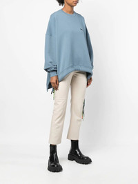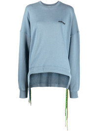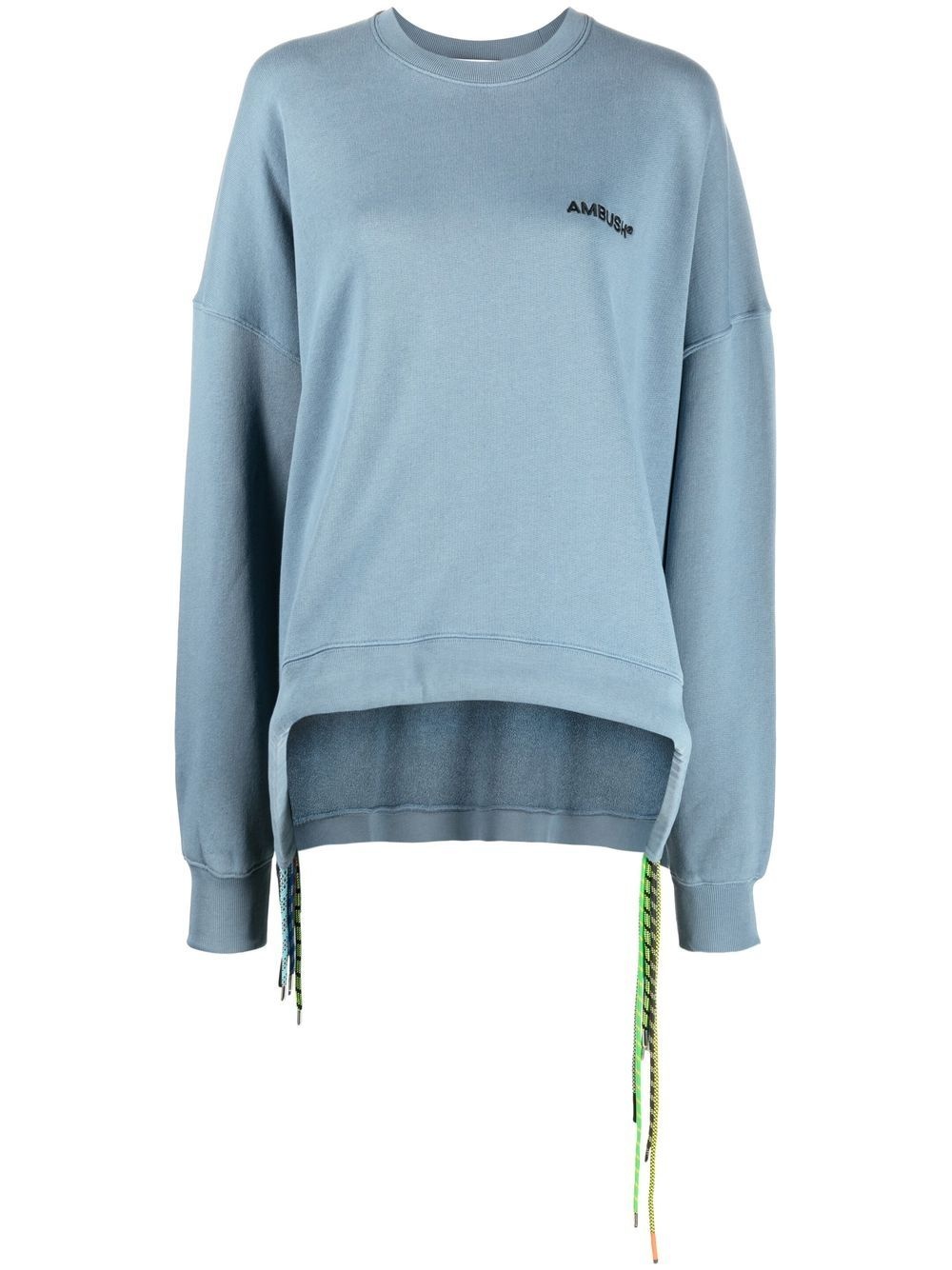 cord-detail crew-neck sweatshirt Each season is an opportunity for AMBUSH to present classic wardrobe staples with an updated edge. This sweatshirt is a fine example, crafted from blue cotton that takes on a new drawstring hemline for added detail. Imported Composition Cotton 100%, Polyester 100% SIZE & FIT Model measurements Height 5 ft 11 in(1.8 m) Bust/Chest 31.49 in(80 cm) Hips 35.82 in(91 cm) Waist 24.8 in(63 cm) FittingInformation This piece fits true to size. We recommend you get your regular size Cut for an oversized fit Made with a mid-weight fabric Washing instructions Machine Wash