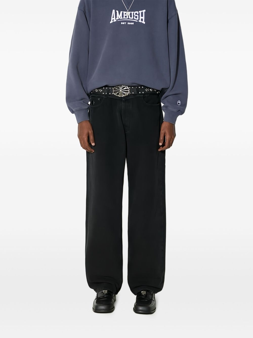 cotton jeans Highlights - Black - Front button fastening - Classic five pockets - Belt loops - Wide leg Imported Composition Lining: Polyester 65%, Cotton 35% Outer: Cotton 100% Washing instructions Read Manufacturer Guidelines