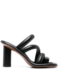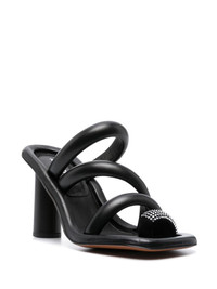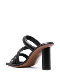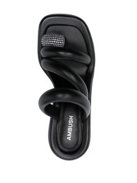 crystal-embellished leather sandals Glistening crystal enrich the strappy design of these AMBUSH sandals as the label's signature tubular heel completes this square-toe sillhouette. Perfect for more formal moments. Highlights - Black - Calf leather - Crystal embellishment - 105mm tubular heel - Single toe strap - Square toe - Branded leather insole - Slip-on style Made in Italy Composition Outer: Calf Leather 100% Lining: Calf Leather 100% Sole: Calf Leather 100%