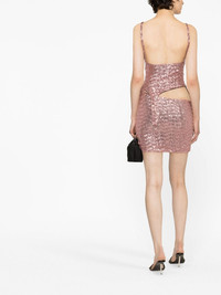 cut-out asymmetric sequin minidress AMBUSH's SS23 collection takes inspiration from Japan's '90s-era rave scene. A striking design, this minidress is crafted to an asymmetric silhouette with cut-outs and covered in pink sequins. Silver-tone D-rings hang from one side and nod to the brand's fascination with utilitarian detailing. Highlights - Blush pink - Stretch-design - Sequin embellishment - Round neck - Sleeveless - Cut-out detailing - Asymmetric design - Thigh-length Made in Italy Composition Lining: Polyamide 69%, Spandex/Elastane 31% Outer: Polyester 100% SIZE & FIT Model measurements Height 5 ft 10 in(1.78 m) Bust/Chest 30.7 in(78 cm) Hips 34.64 in(88 cm) Waist 23.22 in(59 cm) FittingInformation Designed for a close fit throughout Made from a midweight non-stretch fabric, this piece offers minimal elasticity when worn This piece fits true to size – take your usual size Washing instructions Machine Wash
