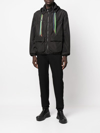 drawstring hooded jacket AMBUSH's experimental take on design shines through with this zipped jacket. The drawstring hood comprises vibrant cords that pop against the black background. Made in Italy Composition Polyester 86%, Polyamide 80%, Spandex/Elastane 20%, Polyurethane 14% SIZE & FIT Model measurements Height 6 ft 2 in(1.87 m) Bust/Chest 36.41 in(92.5 cm) Hips 37 in(94 cm) Waist 29.52 in(75 cm) FittingInformation This piece fits true to size. We recommend you get your regular size Cut for a loose fit Made with a lightweight non-stretch fabric