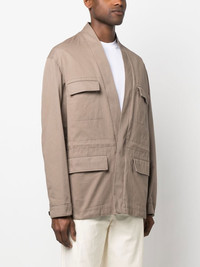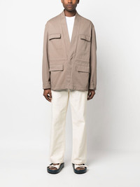 drawstring V-neck jacket A layering essential. Crafted in cotton, this AMBUSH jacket offers a utilitarian aesthetic with four front flap pockets, a drawstring waist and a plunging V-neck. Made in Italy Composition Lining: Polyester 100%, Cotton 100% Outer: Cotton 100% SIZE & FIT Model measurements Height 6 ft 2 in(1.88 m) Bust/Chest 36.61 in(93 cm) Hips 35.82 in(91 cm) Waist 27.95 in(71 cm) FittingInformation This piece fits true to size. We recommend you get your regular size Cut for a loose fit Made with a mid-weight non-stretch fabric Washing instructions Machine Wash