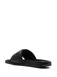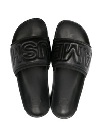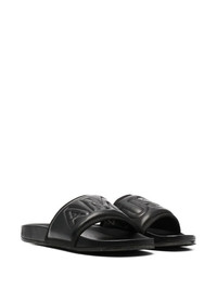 embossed-logo slides black leather slip-on style embossed logo to the front open toe flat rubber sole Made in Italy Composition Outer: Calf Leather 100% Lining: Calf Leather 100% Sole: Rubber 100%