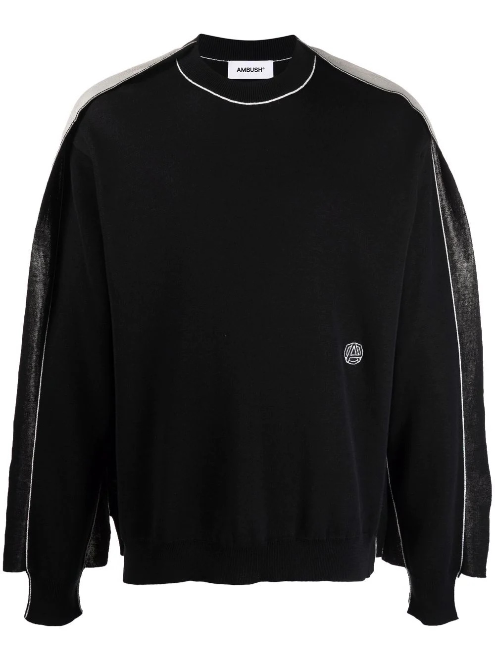 Fin Knit sweatshirt AMBUSH's contemporary style is displayed with this two-tone sweatshirt. Featuring contrasted fin detailing at the shoulders and sleeves, the bold design showcases the brand's experimental aesthetic. Imported Composition Viscose 100%, Cotton 96%, Polyamide 3%, Polyurethane 1% SIZE & FIT Model measurements Height 6 ft 2 in(1.89 m) Bust/Chest 35.43 in(90 cm) Hips 36.61 in(93 cm) Waist 28.74 in(73 cm) FittingInformation This piece fits true to size. We recommend you get your regular size Cut for a loose fit Made with a mid-weight fabric Washing instructions Hand Wash
