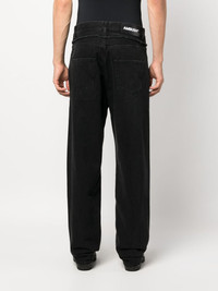 frayed-trim loose jeans Crafted in Italy, these jeans by AMBUSH are decorated with a delicate frayed trim across the waistline. They arrive in a black colourway and boast a loose silhouette that nods to the label's streetwear DNA. Highlights - Black - Cotton - Denim - Frayed detailing - Mid-rise - Belt loops - Concealed fly and button fastening - Classic five pockets - Logo patch to the rear - Straight leg Made in Italy Composition Outer: Cotton 100% Lining: Polyester 65%, Cotton 35% SIZE & FIT Model measurements Height 6 ft 2 in(1.87 m) Bust/Chest 36.41 in(92.5 cm) Hips 35.43 in(90 cm) Waist 29.52 in(75 cm) FittingInformation Designed with a straight leg, these jeans allow for an unrestricted and comfortable fit over the leg Sturdy and hard-wearing, this denim piece offers no stretch This piece fits true to size – take your usual size Washing instructions Machine Wash