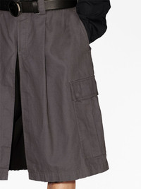 front-slit cargo shorts AMBUSH accentuates its signature bold and surprising designs with these shorts: crafted from cotton and virgin wool, they're cut to a dramatic relaxed silhouette and defined by a high front slit at the centre, surrounded by multiple cargo pockets. Highlights - Slate grey - Cotton - Virgin wool - A-line - Belt loops - Concealed front fastening - Multiple cargo pockets - Front slit - Straight hem - Knee-length Made in Italy Composition Cotton 100%, Virgin Wool 100% Washing instructions Read Manufacturer Guidelines