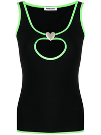 Heart Hole tank top AMBUSH's SS23 collection is inspired by Tokyo's club culture and rave scene, echoed in the energised construction of this black tank top. Trimmed with vibrant green accents, it's adorned with a silver-tone heart charm that emphasises the joyous mood. Made in Italy Composition Viscose 93%, Elastane 7% SIZE & FIT Model measurements Height 5 ft 10 in(1.79 m) Bust/Chest 31.1 in(79 cm) Hips 35.03 in(89 cm) Waist 24.01 in(61 cm) Washing instructions Machine Wash