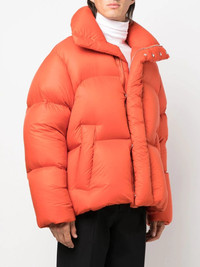 high-collar padded short jacket Fabricated in Italy, this padded AMBUSH short jacket is presented in a bright mango orange hue. Its insulating feather-down interior adds to the piece's durability. Made in Italy Composition Outer: Polyamide 100% Lining: Feather Down 100%, Polyamide 100% SIZE & FIT Model measurements Height 6 ft 2 in(1.89 m) Bust/Chest 37.79 in(96 cm) Hips 37 in(94 cm) Waist 29.92 in(76 cm) FittingInformation This piece fits true to size. We recommend you get your regular size Cut for a loose fit Made with a mid-weight non-stretch fabric Washing instructions Machine Wash