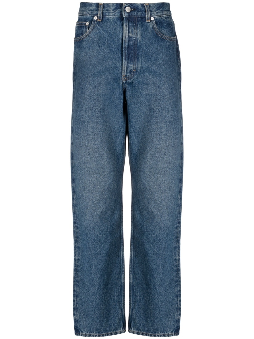 high-rise loose-fit jeans Highlights - Ocean blue - Cotton - Dark wash - Logo patch to the rear - Belt loops - High-waisted - Wide leg - Front button fastening - Classic five pockets Made in Italy Composition Cotton 100% SIZE & FIT Model measurements Height 6 ft 0 in(1.84 m) Bust/Chest 36.22 in(92 cm) Hips 35.43 in(90 cm) Waist 26.77 in(68 cm) FittingInformation Designed with a straight leg, these jeans allow for an unrestricted and comfortable fit over the leg Sturdy and hard-wearing, this denim piece offers no stretch This piece fits true to size – take your usual size Washing instructions Machine Wash