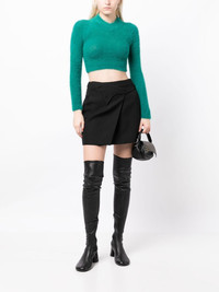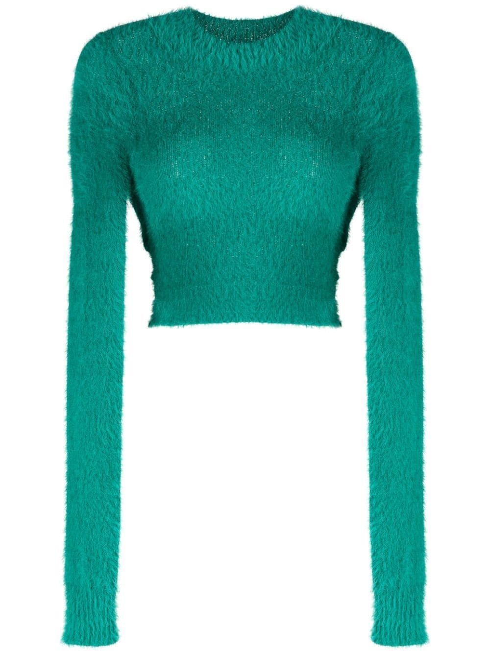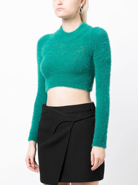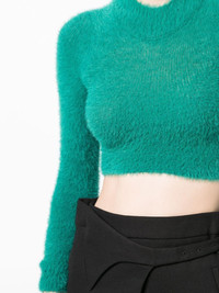 knitted cropped jumper AMBUSH puts a playful spin on knitwear with this jumper. The faux-fur design is cut to an exaggerated cropped silhouette. Highlights - Turquoise blue-green - Faux-fur design - Mock neck - Long sleeves - Cropped Made in Italy Composition Polyamide 100%