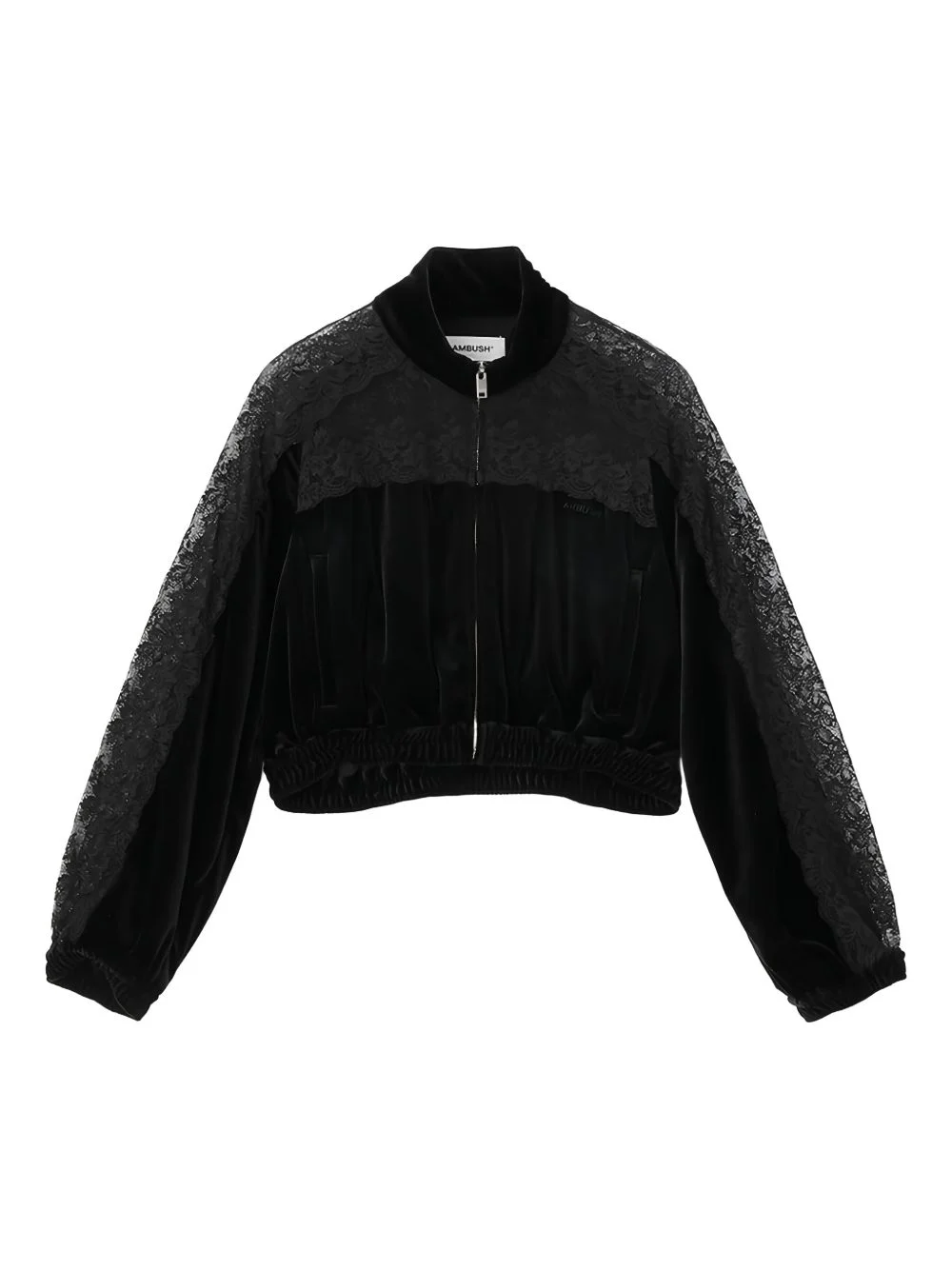 lace-panel bomber jacket Highlights - Black - Lace panels - Elasticated hem - Front zip fastening - Long sleeves Imported Composition Outer: Nylon 100%, Triacetate 72%, Polyester 28% Lining: Polyester 100% Washing instructions Read Manufacturer Guidelines