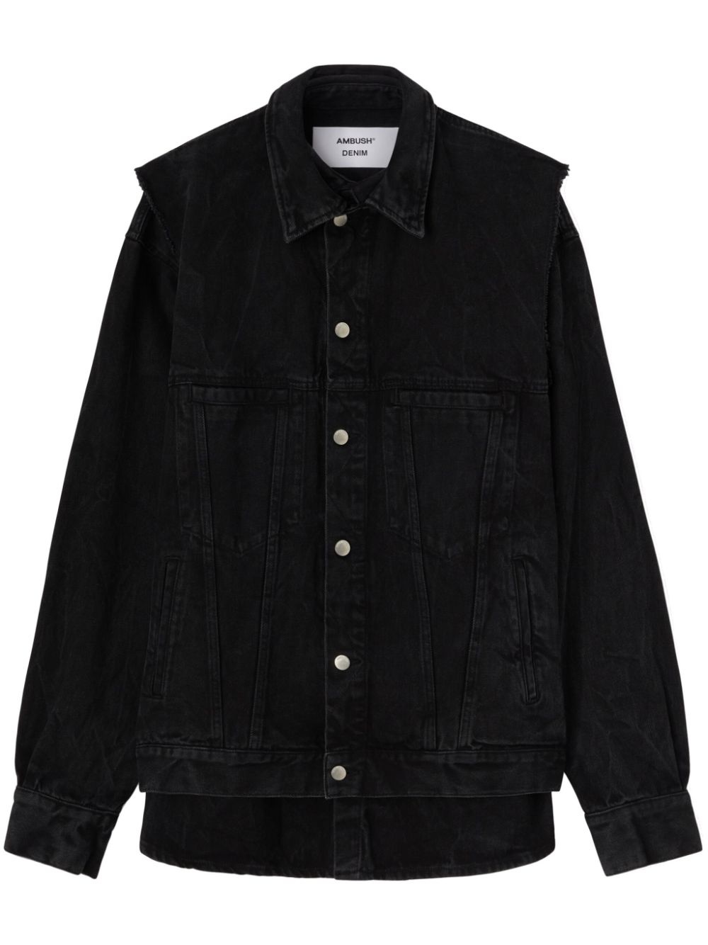 layered denim jacket Highlights - Black - Cotton - Denim - Garment dyed - Layered design - Seam detailing - Classic collar - Front button fastening - Two chest patch pockets - Two side inset pockets - Long sleeves - Buttoned cuffs - Straight hem Made in Italy Composition Cotton 100%