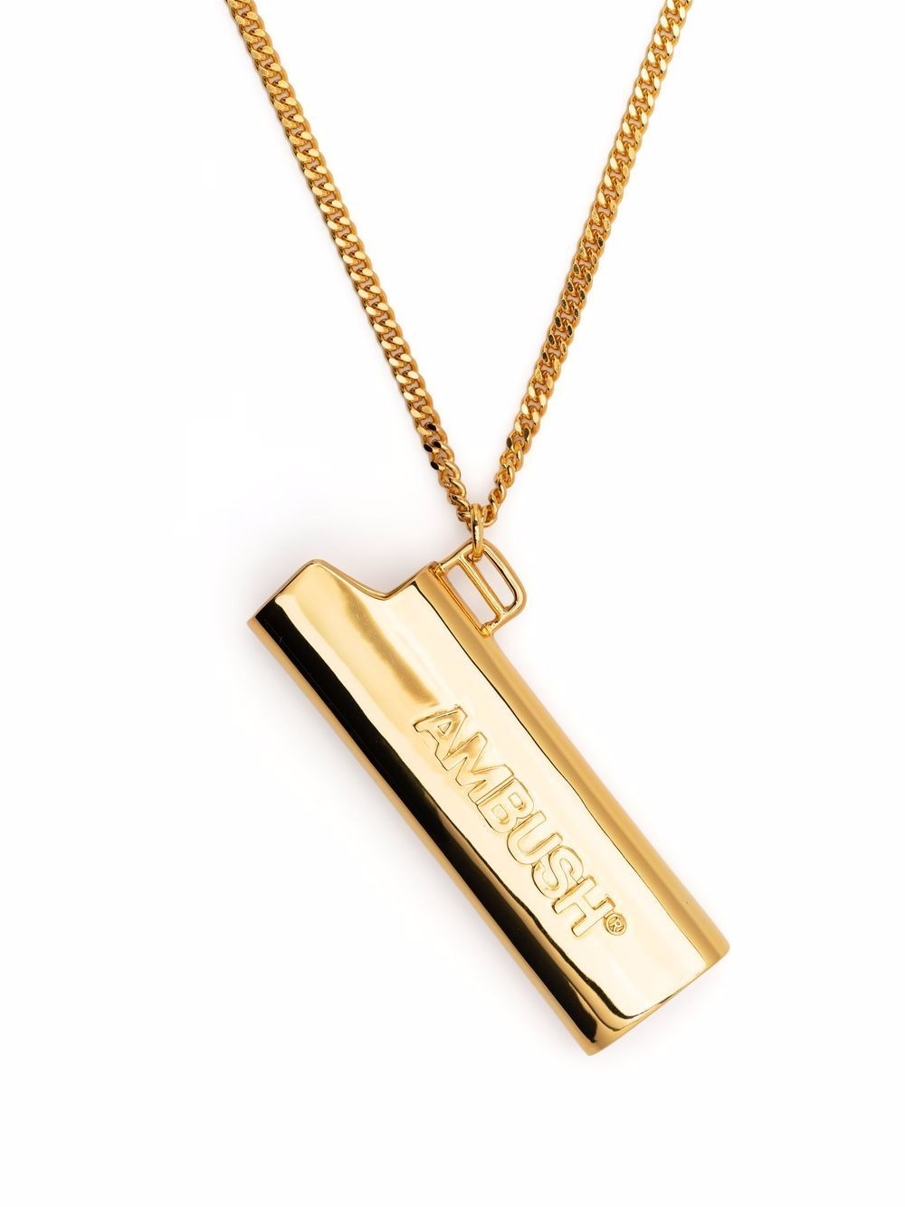lighter case pendant necklace Founded in 2008, AMBUSH is well-known for its contemporary jewellery designs that capture the distinctive Tokyo aesthetic as seen in this necklace. Constructed from gold-tone brass this necklace is detailed with a lighter case pendant, adding a personal touch to any ensemble. Imported SIZE & FIT Model measurements Height 6 ft 2 in(1.88 m) Bust/Chest 36.61 in(93 cm) Hips 35.82 in(91 cm) Waist 27.95 in(71 cm)