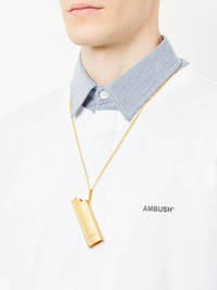 lighter pendant necklace Gold toned metal lighter pendant necklace from AMBUSH. This item is unisex. Imported SIZE & FIT Model measurements Height 6 ft 3 in(1.9 m) Bust/Chest 37.4 in(95 cm) Hips 35.43 in(90 cm) Waist 29.92 in(76 cm) Measurement PENDANT WIDTH 0.94 in(2.4 cm) CIRCUMFERENCE 25.98 in(66 cm) PENDANT LENGTH 2.83 in(7.2 cm)