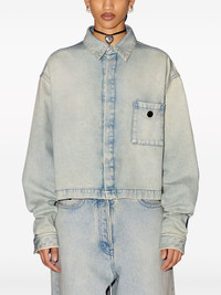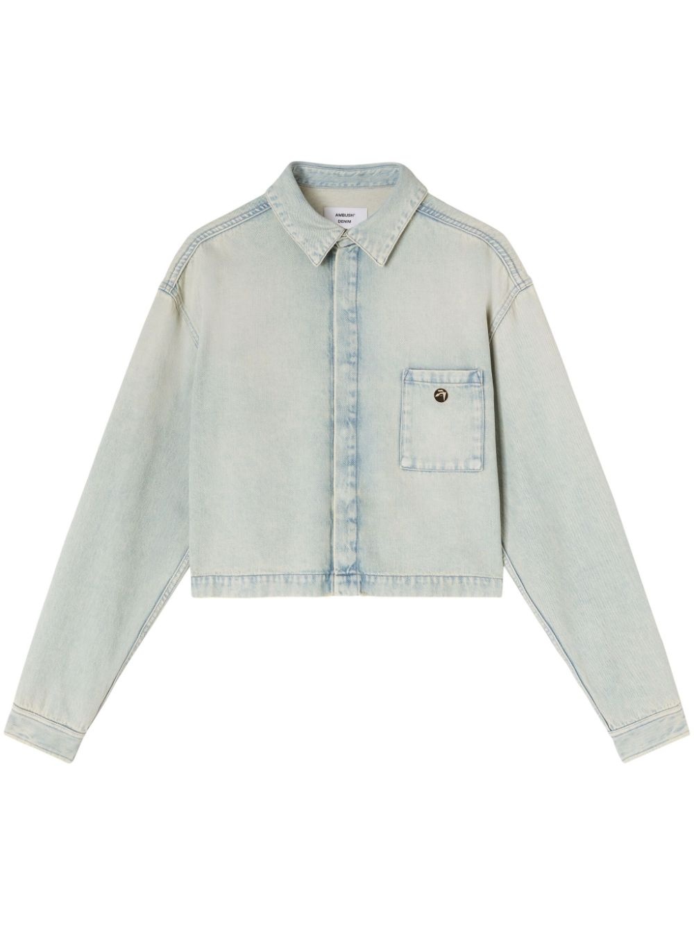 logo-applique denim jacket AMBUSH’s jacket is modelled on boxy styles from the ‘50s. It’s cut from washed blue denim to a cropped drop-shoulder silhouette. Highlights - Light blue - Cotton - Washed denim - Applique logo - Classic collar - Concealed front fastening - Drop shoulder - Long sleeves - Buttoned cuffs - Chest patch pocket - Straight hem Made in Italy Composition Cotton 100% Washing instructions Read Manufacturer Guidelines