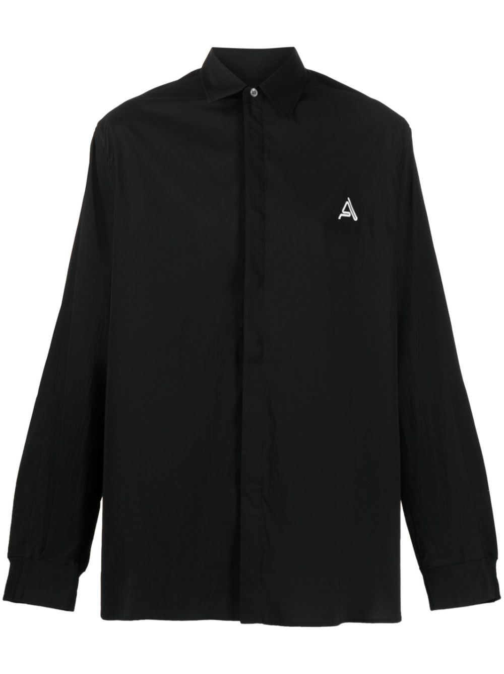 logo-embroidered cotton shirt A classic wardrobe staple, this long-sleeved shirt is elevated by AMBUSH's sense of irreverence. While the chest boasts a minimal embroidered logo, the back is decorated with a raw graphic print inspired by the brand's SS23 season. Highlights - Black/white - Cotton blend - Embroidered logo at the chest - Graphic print to the rear - Classic collar - Front button fastening - Long sleeves - Buttoned cuffs - Straight hem Imported Composition Rayon 100%, Cotton 50%, Nylon 46%, Polyurethane 4% SIZE & FIT Model measurements Height 6 ft 1 in(1.85 m) Bust/Chest 38.58 in(98 cm) Hips 37 in(94 cm) Waist 30.31 in(77 cm) FittingInformation Designed to be unstructured, offering a loose fit throughout Made from a midweight non-stretch fabric This piece fits true to size – take your usual size Washing instructions Machine Wash