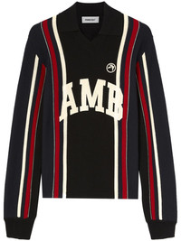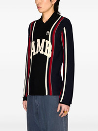 logo-embroidered jumper Highlights - Black/multicolour - Virgin wool blend - Knitted construction - Vertical stripe pattern - Embroidered logo to the front - V-neck - Long sleeves - Straight hem Made in Italy Composition Acrylic 50%, Virgin Wool 50%