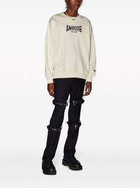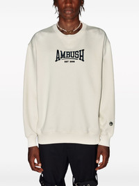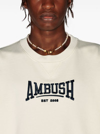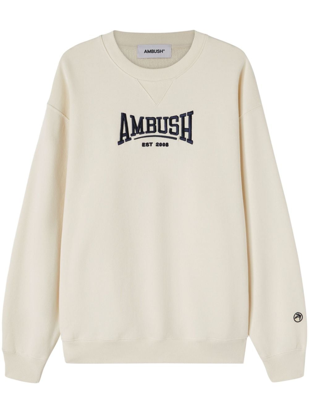 logo-embroidered organic-cotton sweatshirt AMBUSH adds a subtle signature twist to this classic crew neck sweatshirt. Released in a navy-blue colourway, this piece is detailed with a contrasting logo embroidered on the front. Highlights - Off-white/navy blue - Organic cotton - Embroidered logo to the front - Crew neck - Drop shoulder - Long sleeves - Straight hem Imported Composition Organic Cotton 100% Washing instructions Read Manufacturer Guidelines